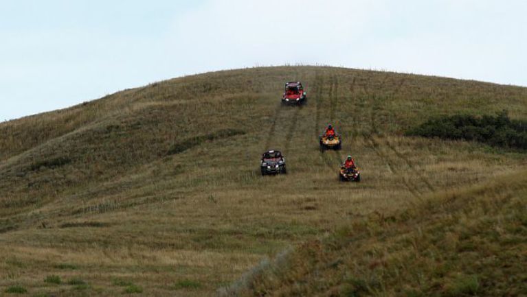 Москва, Санкт-Петербург, Екатеринбург, Казань, Пермь, Пенза, Вязьма, Ставрополь – вот далеко не полный перечень городов. Второй этап прошел в формате ралли-рейда. Крутые подъемы и спуски, перепады высот, длинные скоростные участки и неизведанные просторы Ставропольского края — все это для абсолютного большинства участников соревнования было в новинку. Трасса протяженностью до двухсот километров была поделена на четыре спецучастка (СУ), по два СУ на каждый день. За отведенный норматив времени гонщикам нужно было в строго обозначенной последовательности посетить подготовленные организатором контрольные точки. Тот, кто быстрее всех и, главное, верно соберет все точки, и был объявлен победителем. Организатор соревнования OFF ROAD клуб г. Екатеринбурга проложил трассу таким образом, чтобы участникам пришлось приложить немало усилий в поисках подъезда к контрольным точкам, расположенным на противоположных склонах глубоких балок и оврагов.