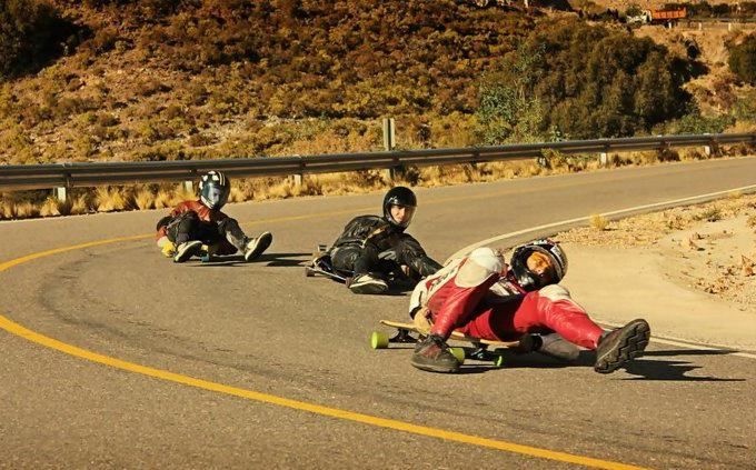 Скоростной спуск на досках по автомобильным трассам. Тормозов здесь не существует, так что стоит только разогнаться и остановиться можно будет уже очень тяжело.