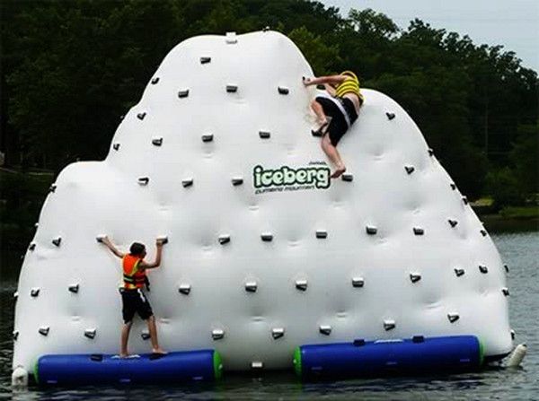 Надувной скалодром в виде айсберга для водоемов может похвастаться 20-футовой стеной. Главное отличие этой стены – вы можете не бояться падений и вызванных ими травм.