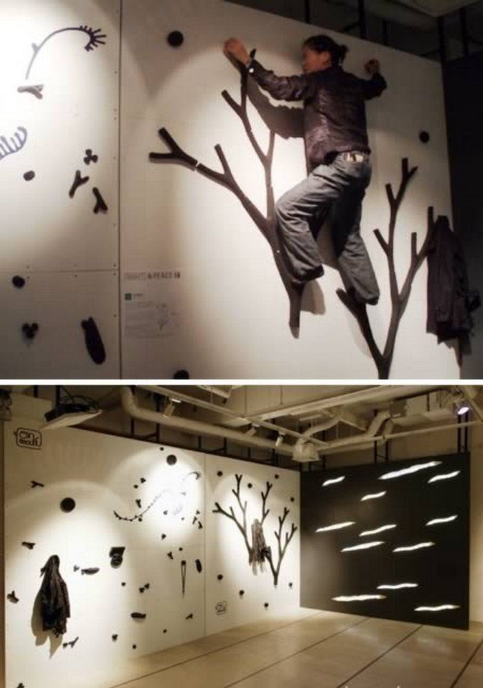 Проект "На стене" представляет собой продукт сотрудничества дизайнеров Томоко Азуми, Ри Исоно, Норико Катаямы и Хирое Танита. Они создали простые, но красивые формы для залезания на стены, позволяющие дизайнерам и всем желающим подняться вверх и посмотреть на окружающие вещи с другой точки стороны.
