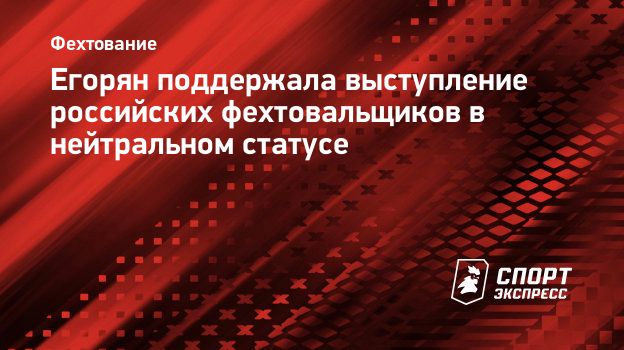Егорян поддержала выступление российских фехтовальщиков в нейтральном статусе