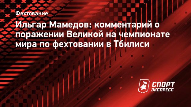 Президент Федерации фехтования России Ильгар Мамедов прокомментировал поражение Софьи Великой на чемпионате мира в Тбилиси.