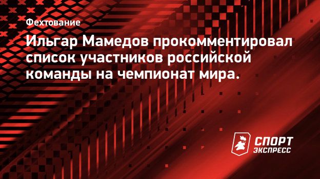 Президент Федерации фехтования России (ФФР) Ильгар Мамедов прокомментировал «СЭ» список участников российской команды на чемпионат мира.