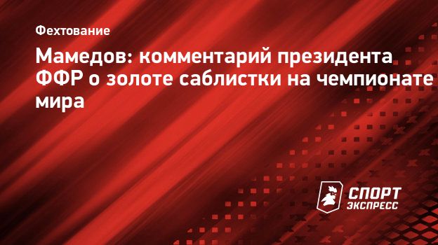 Президент Федерации фехтования России Ильгар Мамедов в комментарии для «СЭ» отреагировал на победу саблистки Яны Егорян на чемпионате мира в Тбилиси.