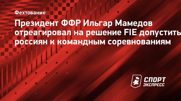Президент Федерации фехтования России (ФФР) Ильгар Мамедов прокомментировал «СЭ» решение Международной федерации фехтования (FIE) допустить российских спортсменов к командным международным соревнованиям в нейтральном статусе.