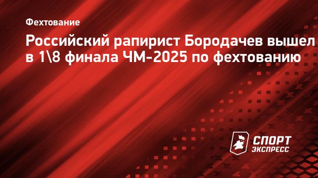 Российский рапирист Бородачев вышел в 1/8 финала ЧМ-2025 по фехтованию