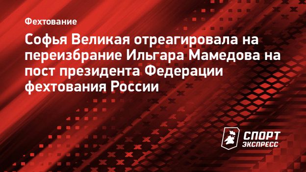 Двукратная олимпийская чемпионка, фехтовальщица Софья Великая в разговоре с «СЭ» отреагировала на переизбрание Ильгара Мамедова на пост президента Федерации фехтования России (ФФР).