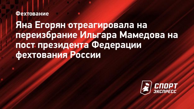 Двукратная олимпийская чемпионка по фехтованию Яна Егорян в разговоре с «СЭ» отреагировала на переизбрание Ильгара Мамедова на пост президента Федерации фехтования России (ФФР).