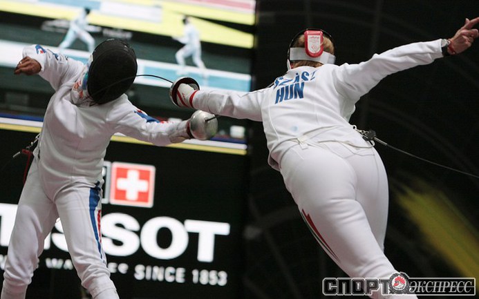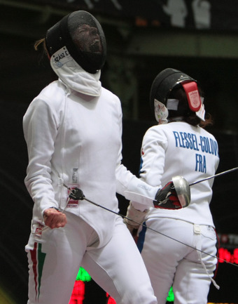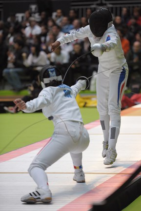 Париж. Чемпионат мира. Женщины. Рапира. Бронзовые медали завоевали кореянка Хьюн Хи Нам и пятикратная чемпионка мира итальянка Валентина Веццали. Лучшая из россиянок, чемпионка мира 2009 года Аида Шанаева заняла шестое место. Евгения Ламонова была 10-й, Юлия Бирюкова – 13-й, Инна Дериглазова – 17-й. Фото AFP