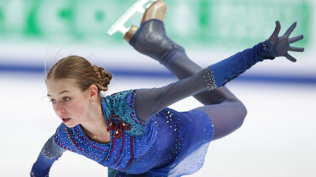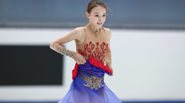 Российские фигуристки Алена Косторная, Анна Щербакова и Александра Трусова провели тренировку перед произвольной программой на чемпионате Европы в Граце.