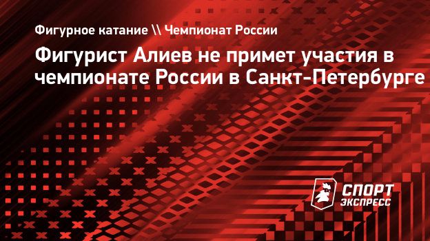 Фигурист Дмитрий Алиев не примет участия в предстоящем чемпионате России по фигурному катанию, сообщает ТАСС со ссылкой на источник.