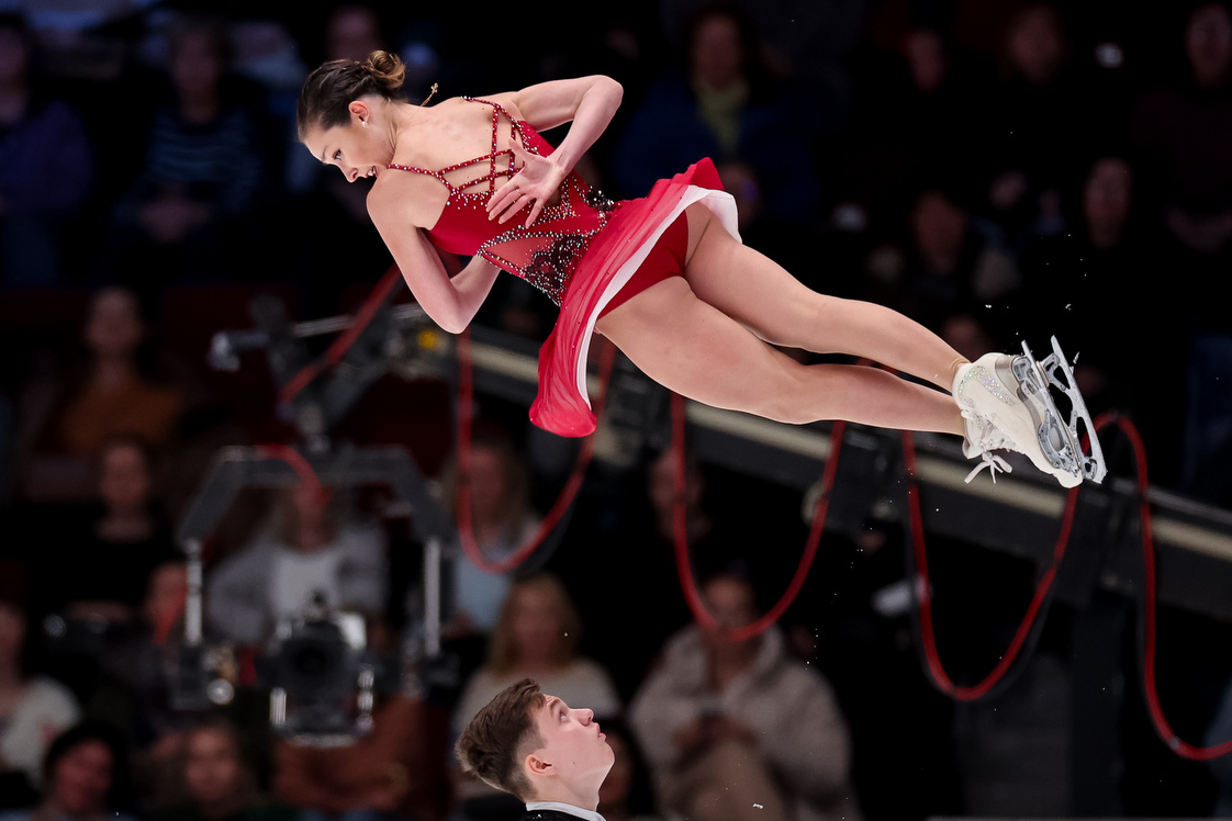 Соревнования пар на чемпионате России 2026 ознаменовались плотной битвой Анастасии Мишиной/Александра Галлямова (223,63) и Александры Бойковой/Дмитрия Козловского (224,29), которых разделило менее балла в итоговой таблице.