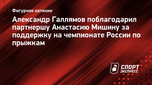 Российский фигурист Александр Галлямов поблагодарил партнершу Анастасию Мишину за поддержку на чемпионате России по прыжкам.