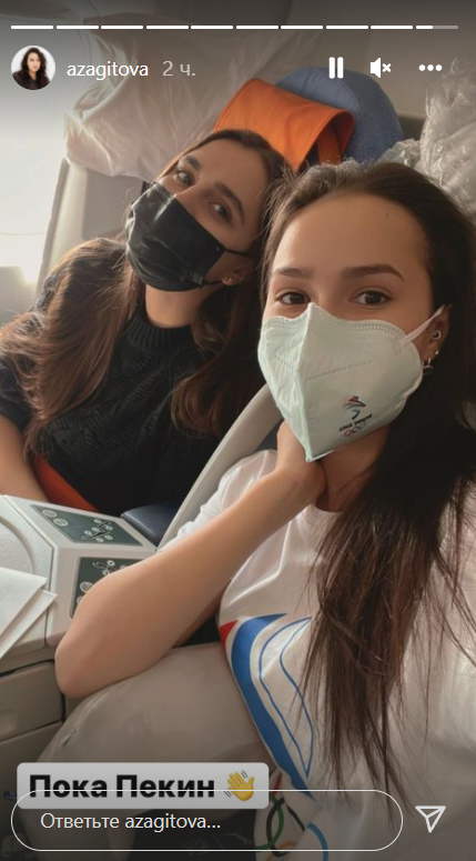 Российская фигуристка Алина Загитова в своем Instagram опубликовала фотографию из самолета. Девушка вместе с гимнасткой Маргаритой Мамун вылетелf из Пекина в Россию.