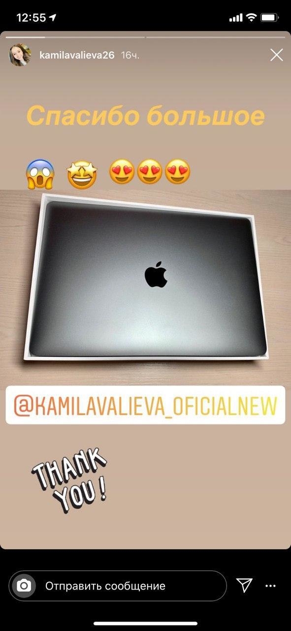 Поклонники подарили 14-летней фигуристке ноутбук MacBook. Валиева опубликовала фотографию в сториз и написала «спасибо большое».