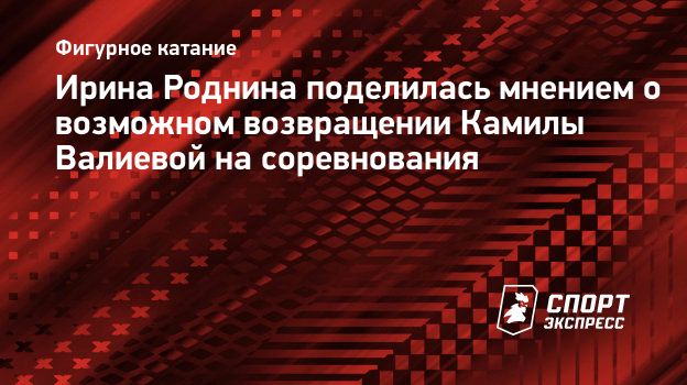 Трехкратная олимпийская чемпионка, депутат Госдумы РФ Ирина Роднина поделилась мнением о возможном возвращении российской фигуристки Камилы Валиевой на соревнования. Отстранение 19-летней спортсменки за нарушение антидопинговых правил истекает 25 декабря, а с 25 октября ей разрешено официально тренироваться.