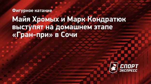 Российские фигуристы Майя Хромых и Марк Кондратюк выступят на домашнем этапе «Гран-при» в Сочи. Информация об этом появилась на официальном сайте Международного союза конькобежцев (ISU).