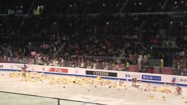 Японские болельщики забросали лед мягкими Винни-Пухами после произвольной программы двукратного олимпийского чемпиона Юдзуру Ханю в финале «Гран-при» в Турине.