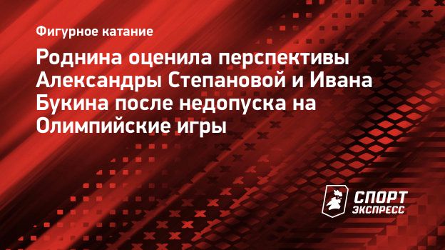 Депутат Государственной думы Ирина Роднина оценила перспективы Александры Степановой и Ивана Букина после недопуска на Олимпийские игры.