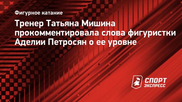 Российский тренер по фигурному катанию Татьяна Мишина в комментарии для «СЭ» оценила слова Аделии Петросян. Ранее двукратная чемпионка России заявила, что пока недотягивает до уровня Анны Щербаковой, Александры Трусовой и Алены Косторной.