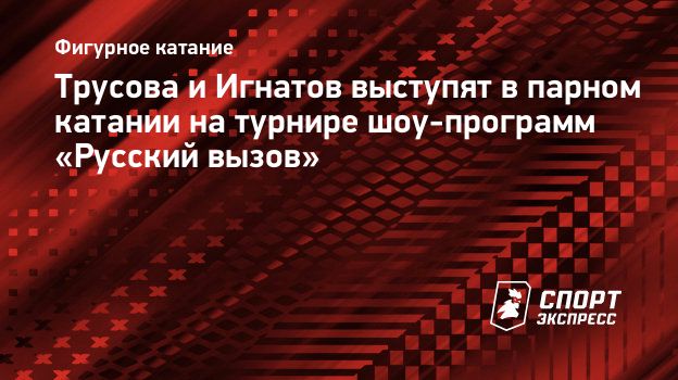 Трусова и Игнатов выступят в парном катании на турнире шоу-программ «Русский вызов»