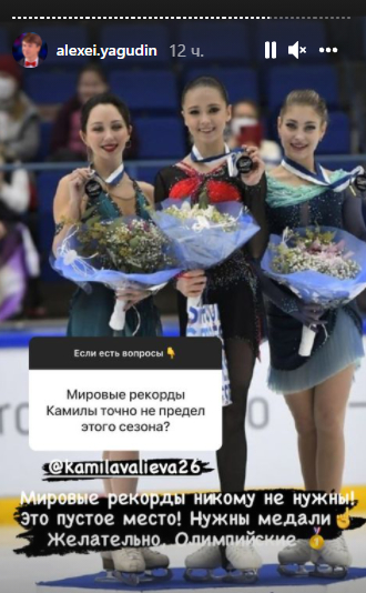 «Мировые рекорды никому не нужны! Это пустое место! Нужны медали. Желательно олимпийские», — написал Ягудин.