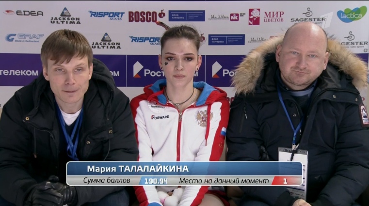 Мария Талалайкина выолнила шикарную программу по эмоциям. Набирала она по ходу всего проката, не сорвала ни единого прыжка - результат будет очень хороший. 190,94 балла, сразу видно преимущество над Леоновой.