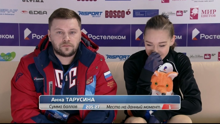 Анна Тарусина также отожгла. Пока у нас сегодня качественные прокаты, не было ни единого провала. Эмоциональное выступление дает возможность Тарусиной набрать в сумме 205,27 балла, это явное первое место.