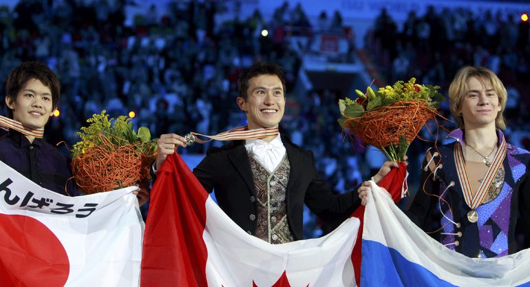 Чемпионат мира по фигурному катанию в Москве. Мужчины. Россиянин Артур Гачинский завоевал бронзовую медаль. "Золото" у канадца Патрика Чана, "серебро" завоевал японец Такахико Казука. Фото REUTERS