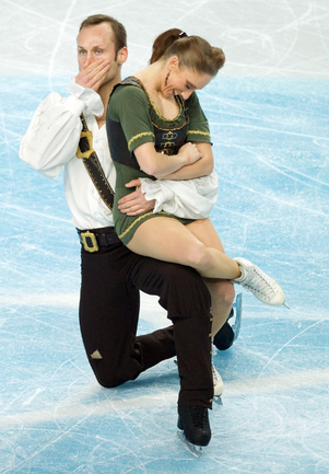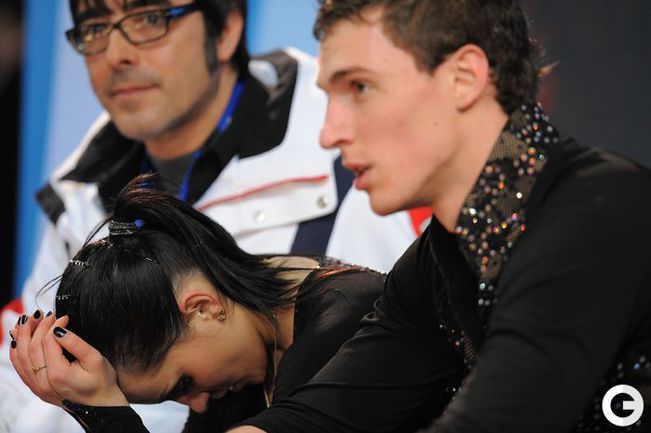 Фигурное катание. Шеффилд. Чемпионат Европы. Пары. Произвольная программа. 1. ВОЛОСОЖАР/ТРАНЬКОВ - 137,65 балла. 2. БАЗАРОВА/ЛАРИОНОВ - 126,90. 3. СТОЛБОВА/КЛИМОВ (все - Россия) - 113,15. 4. Бертон/Готарек (Италия) - 104,61. Фото AFP