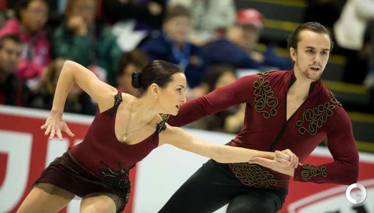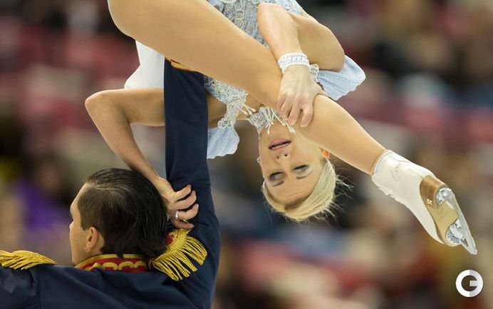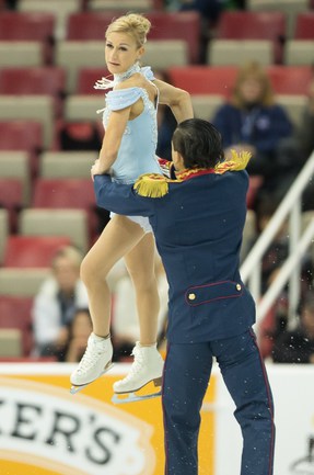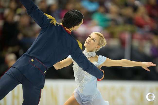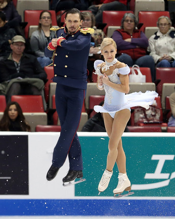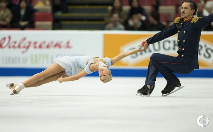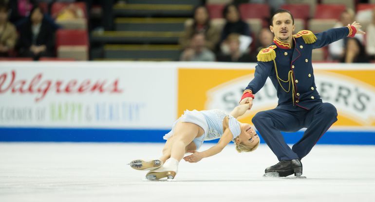 Детройт. Действующие чемпионы мира и Европы Татьяна Волосожар и Максим Траньков выиграли короткую программу Skate America среди пар с мировым рекордом – 83,05. Третье место занимает еще одна российская пара – Ксения Столбова и Федор Климов. Фото AFP