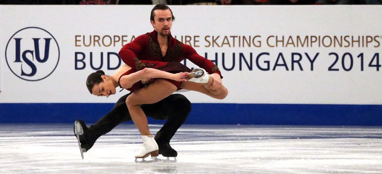 Фигурное катание. Будапешт. Чемпионат Европы. Пары. Короткая программа. 1. ВОЛОСОЖАР/ТРАНЬКОВ (Россия) – 83,98. 2. Савченко/Шолковы (Германия) – 76,76. 3. БАЗАРОВА/ЛАРИОНОВ (Россия) – 71,70. 4. СТОЛБОВА/КЛИМОВ (Россия) – 70,90. Фото AFP