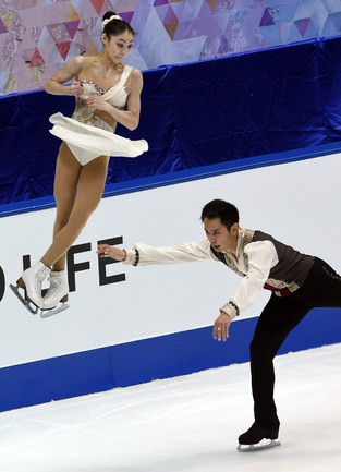 Юко Кавагути/Александр Смирнов стали вторыми в короткой программе на этапе "Гран-при" в Японии. Четвертый результат показали также россияне – Вера Базарова и Андрей Депутат. Фото AFP