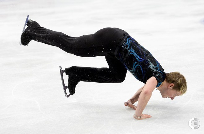 Стокгольм. Чемпионат Европы. Мужчины. Короткая программа. 1. Х. Фернандес (Испания) – 89,24. 2. ВОРОНОВ (Россия) – 81,06. 3. Бржезина (Чехия) – 80,86. 4. КОВТУН (Россия) – 78,21. Фото AFP