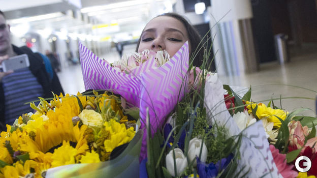 Чемпионка мира фигуристка Алина Загитова вернулась в Россию из Японии. В аэропорту, несмотря на ночь и трехчасовую задержку, ее встречали самые преданные поклонницы. Они подарили Алине множество цветов и короновали замечательным венком.