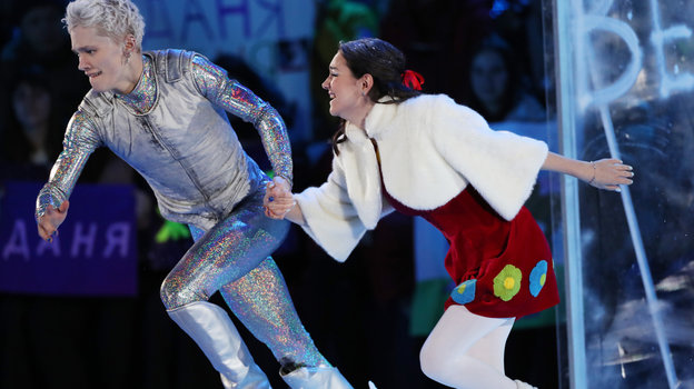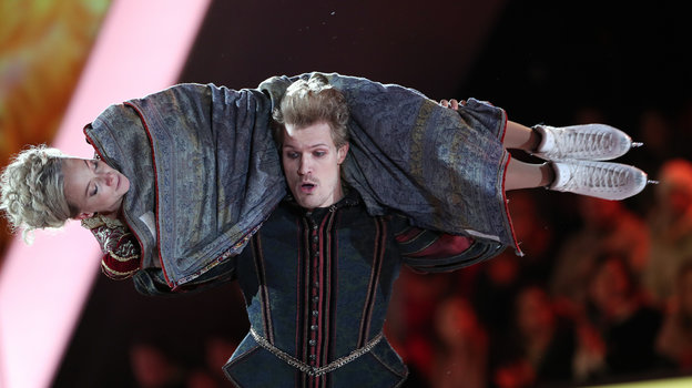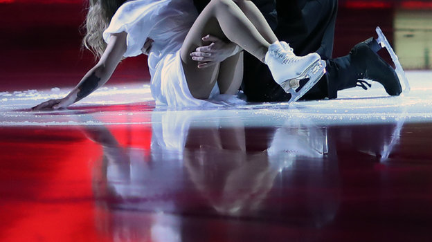 «Ледниковый период»: Медведева — Герда, Милохин — Кай, поцелуи, ковры и откровенное черное платье Загитовой