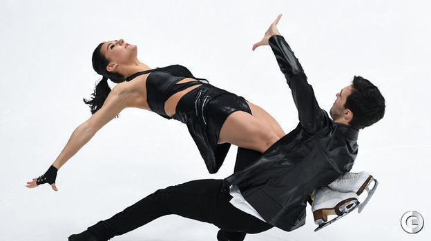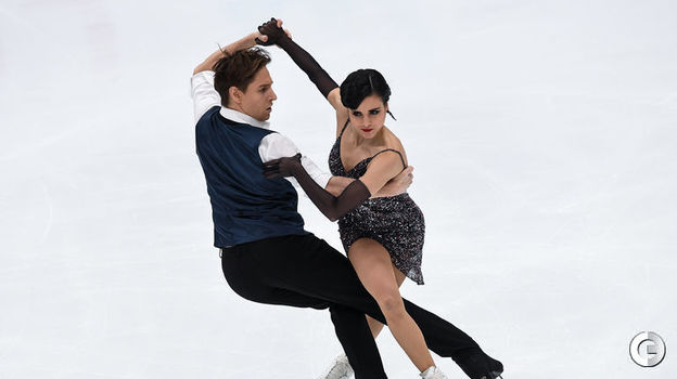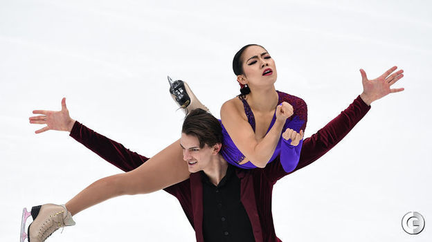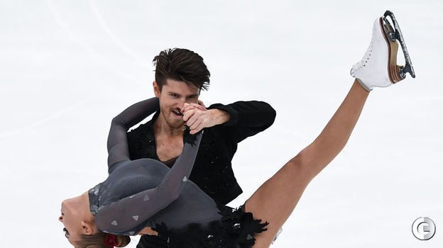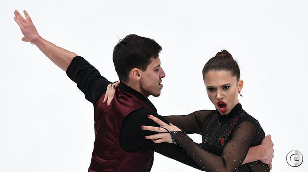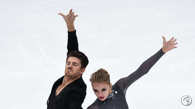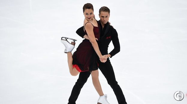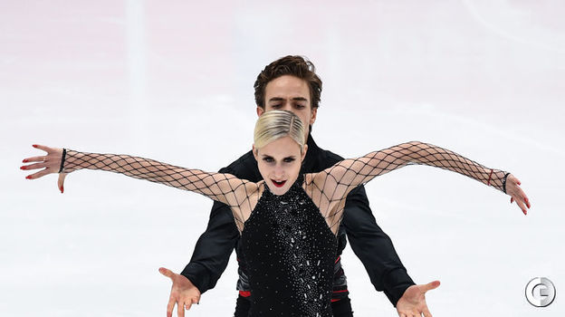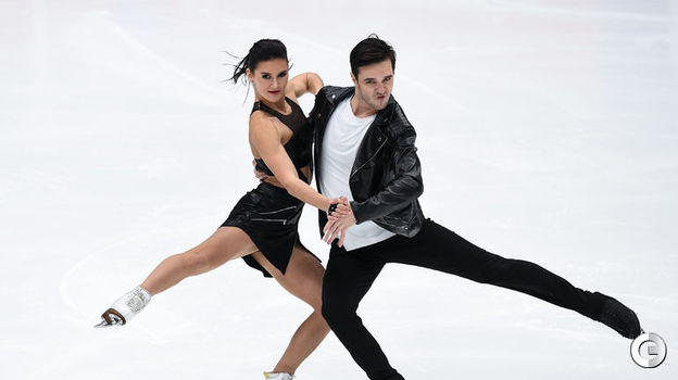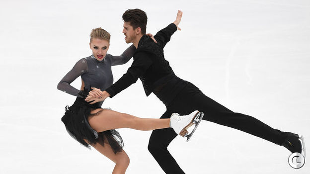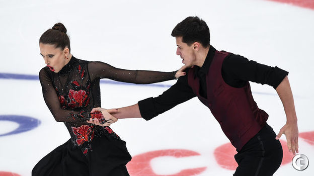 Россияне Александра Степанова и Иван Букин занимают первое место после исполнения ритм-танца на этапе "Гран-при" в Москве.