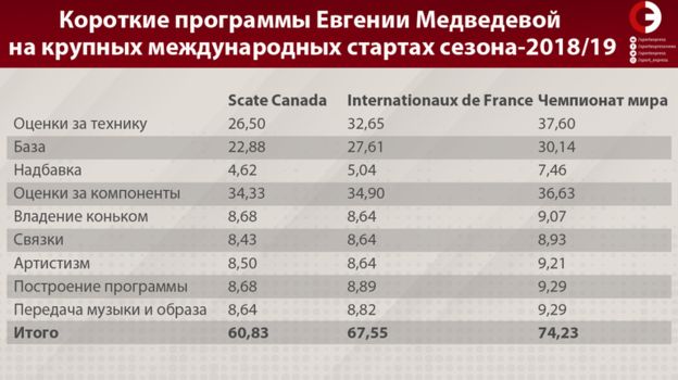 Евгения Медведева после короткой программы расположилась на четвертой строчке в турнирной таблице, установив по ходу лучший результат сезона на международных стартах. Свой результат с канадского этапа Гран-при двукратная чемпионка мира перекрыла на более чем на 13 баллов, а с французского – на 6,68.