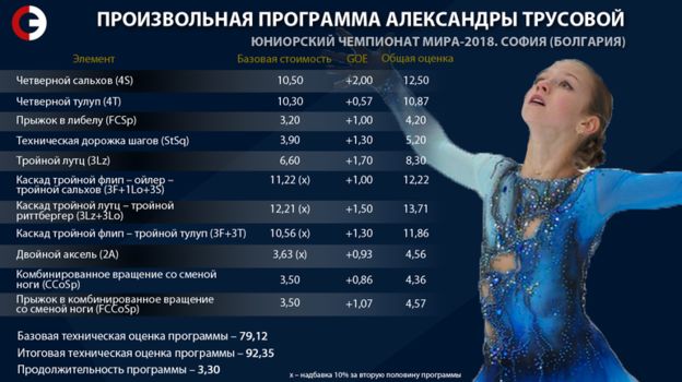 Но Трусова за технику набрала такую сумму, которая не покорилась и многим одиночникам, исполняющим по несколько прыжков в четыре оборота.