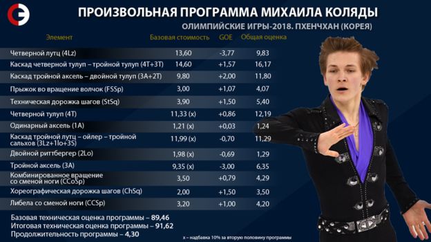 У Загитовой в командном турнире Олимпиады было 83,06, у чемпиона мира среди юниоров Алексея Ерохова (тоже ученика Тутберидзе) – 85,36. Даже Михаил Коляда в произвольной программе на Олимпиаде набрал меньше! Что сделал Коляда в Пхенчхане? Хотя, в случае с Михаилом надо говорить о том, что он не сделал. Он не сделал тройной аксель, прыгнув вместо этого одинарный, и вместо тройного риттбергера сделал двойной. А также упал с четверного лутца и тройного акселя. Он получил 91,62 балла за технику.