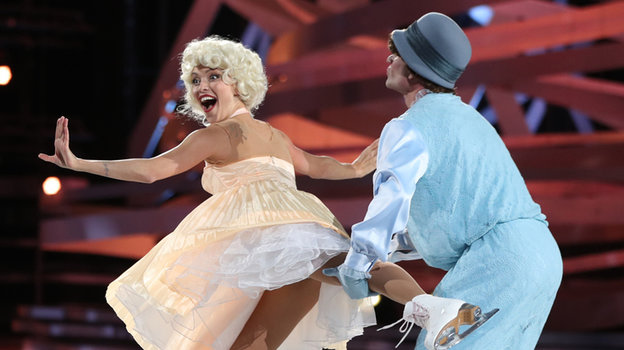 Ведущая «Орла и решки» определенно вживается в роль фигуристки — что отражается в оценках за артистизм и лидерстве в турнирной таблице. Роман Костомаров старается соответствовать — иначе рискует быть придушенным.