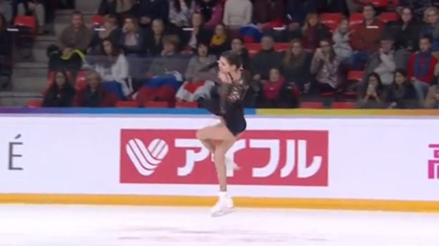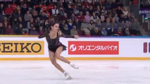 Россиянка Евгения Медведева допустила две грубые ошибки во время произвольной программы на "Гран-при Франции". В самом начале программы Медведева ошиблась при выполнении двойного акселя. Этот прыжок, даже во времена, когда ей не было равных, всегда был далеко не самым ее любимым и иногда на нем вылезали помарки.