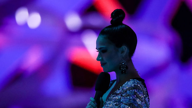 Даже короткие и блестящие платья, не совсем пригодные для соревнований, не могут испортить Алине настроение. Видно, что работа в роли ведущей девушке по душе.