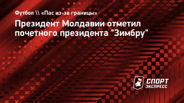 Почетный президент кишиневского "Зимбру" Николае Черный награжден Орденом почета. В указе президента Молдавии Владимира Воронина отмечается, что Черный удостоен государственной награды за "особые заслуги в пропаганде физической культуры и спорта и значительный вклад в строительство спортивного комплекса футбольного клуба "Зимбру", сообщает корреспондент "СЭ" Владимир ПАНУШ. |