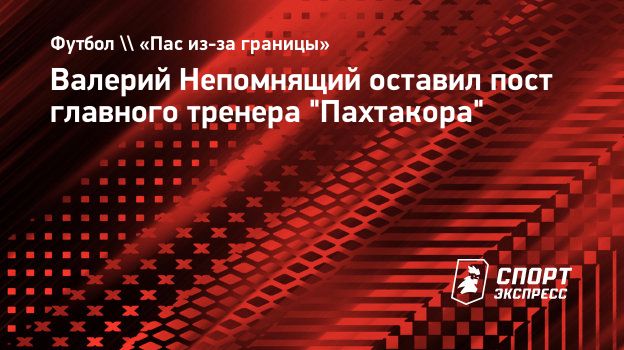 Валерий Непомнящий оставил пост главного тренера "Пахтакора"