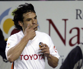 Нападающий "Валенсии" Фернандо Морьентес призывает своих партнеров по команде реабилитироваться перед своими болельщиками после поражения от "Челси" в четвертьфинале Лиги чемпионов. Занимающие пятое место в турнирной таблице валенсийцы в воскресенье играют с "Севильей". |