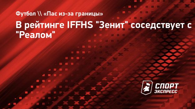 В рейтинге IFFHS "Зенит" соседствует с "Реалом"