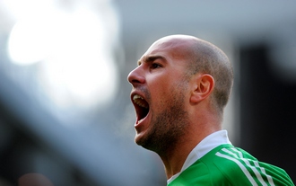 В поединке с "Астон Виллой" голкипер "Ливерпуля" Пепе Рейна сохранил свои ворота в неприкосновенности. При этом партнеры испанца провели пять мячей и заработали удаление для вратаря бирмингемцев Брэда Фриделя. Первый номер "Виллы" был удален на 64-й минуте за снос Фернандо Торреса в своей штрафной. Арбитр матча Мартин Эткинсон показал Фриделю красную карточку и покарал гостей "Энфилд Роуд" вторым за игру пенальти. С его помощью капитан мерсисайдцев Стивен Джеррард оформил хет-трик, переиграв Брэда Гузана и установив окончательный счет. |