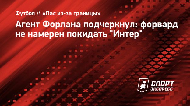 Агент Форлана подчеркнул: форвард не намерен покидать "Интер"