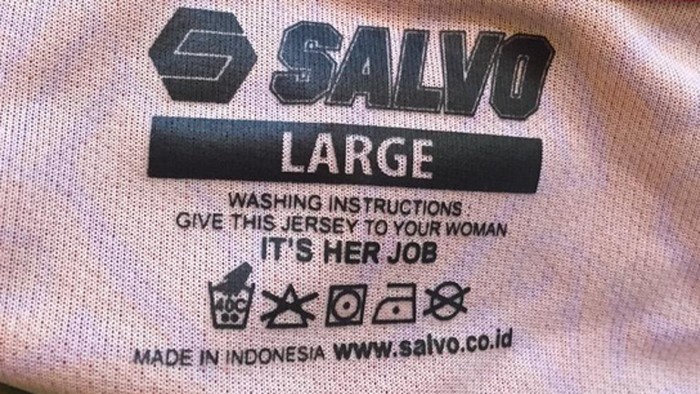 Фирма по производству спортивной экипировки принесла извинения всем женщинам за шутливую инструкцию, которая была напечатана на форме одного из клубов высшего дивизиона чемпионата Индонезии. На внутренней стороне футболок было написано: "Инструкция по стирке. Отдайте эту футболку своей женщине. Это ее работа".